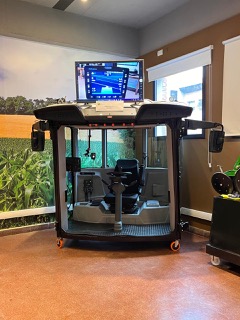 Cuenta con una cabina de última tecnología de origen europeo, equipada con simuladores de pulverización y de piloto automático. Los alumnos podrán marcar límites de campo, crear tareas y trabajar en tiempo real, tanto desde monitores internos, como externos.