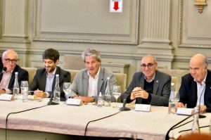 Así, el Presidente de la Bolsa de Comercio de Rosario, Miguel Simioni, junto a autoridades de la institución, recibió al grupo encabezado por Juan Pazo, Director Ejecutivo de ARCA; Pablo Lavigne, Secretario de Coordinación de Producción del Ministerio de Economía; Sergio Iraeta, Secretario de Agricultura, Ganadería y Pesca de la Nación; y Martín Vauthier, Asesor del Ministerio de Economía y Director del BICE (aunque Iraeta no subió al escenario para las explicaciones).